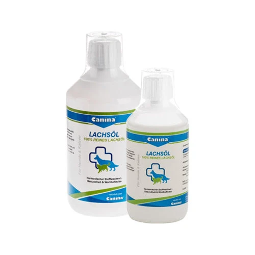 Canina Lachsöl ist 100 % reines Lachsöl, reich an mehrfach ungesättigten Fettsäuren für Hunde und Katzen. Da Tiere diese Fettsäuren nicht selbstständig produzieren können, ist es wichtig, dass Sie diese mit der Nahrung aufnehmen. Dieses Öl unterstützt Haut, Haarwachstum und fördert den Stoffwechsel.