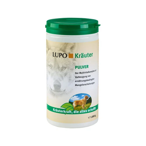 Sie können Kräuterkraft Ihrem Hund täglich geben. Es ist als Pulver erhältlich. Das Luposan Kräuterkraft ist für Welpen ab 3 Wochen geeignet. Kühl und trocken bewahren!